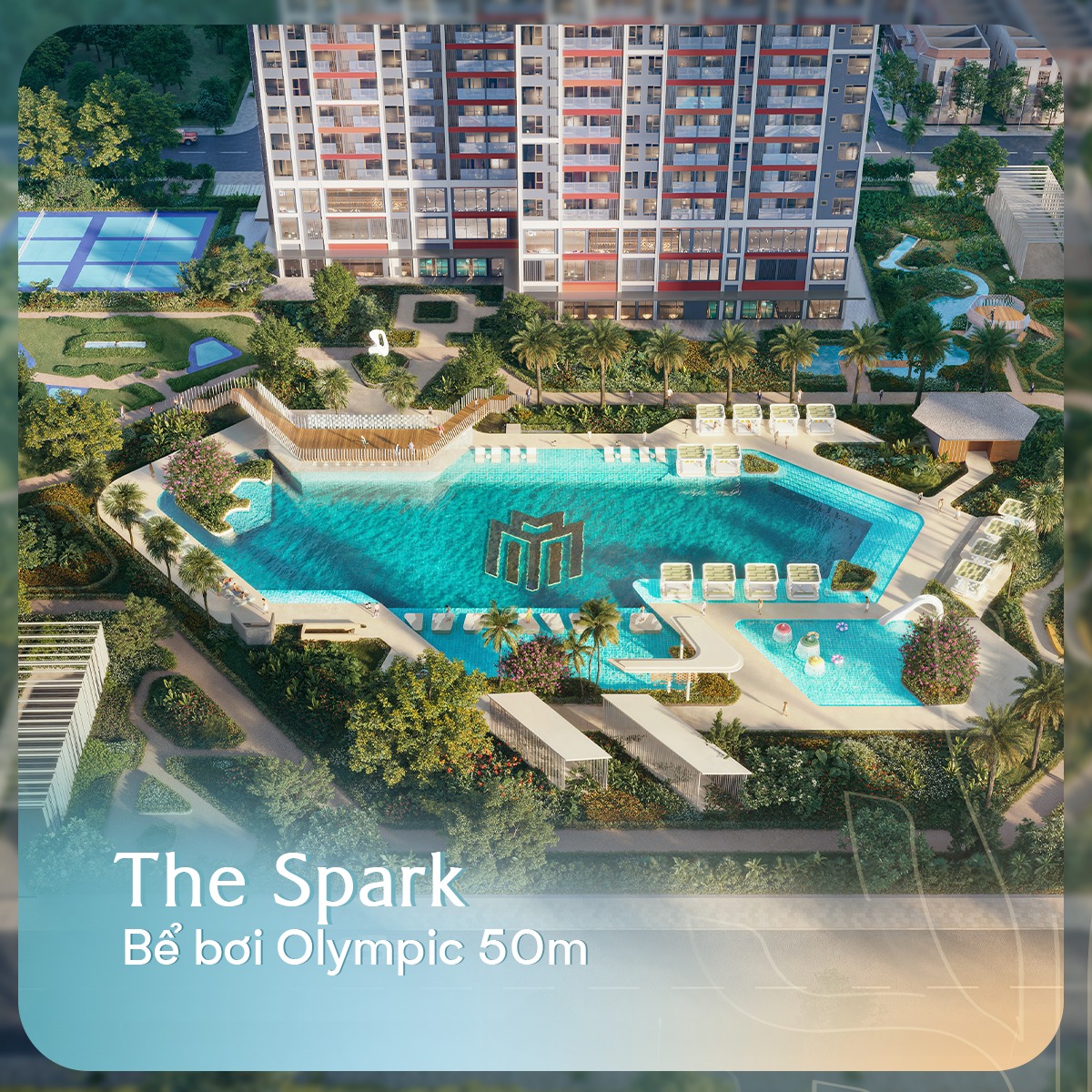 Tại phân khu The Spark, bể bơi Olympic dài 50m mở ra một không gian vận động chuẩn mực dành cho những cư dân yêu thể thao. Thiết kế tiêu chuẩn cùng mặt nước trong xanh tạo điều kiện lý tưởng để rèn luyện sức bền và duy trì phong độ mỗi ngày. Trong từng sải bơi mạnh mẽ vươn dài dưới làn nước mát lành, cơ thể được tôi luyện, nhịp tim được tăng cường và tinh thần được vững chãi hơn mỗi ngày.